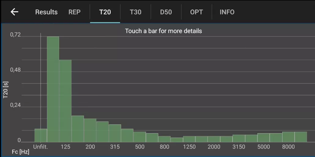 (Resultados de tempo de reverberação de uma cabine de locução. Fonte: Pablo Serrano)